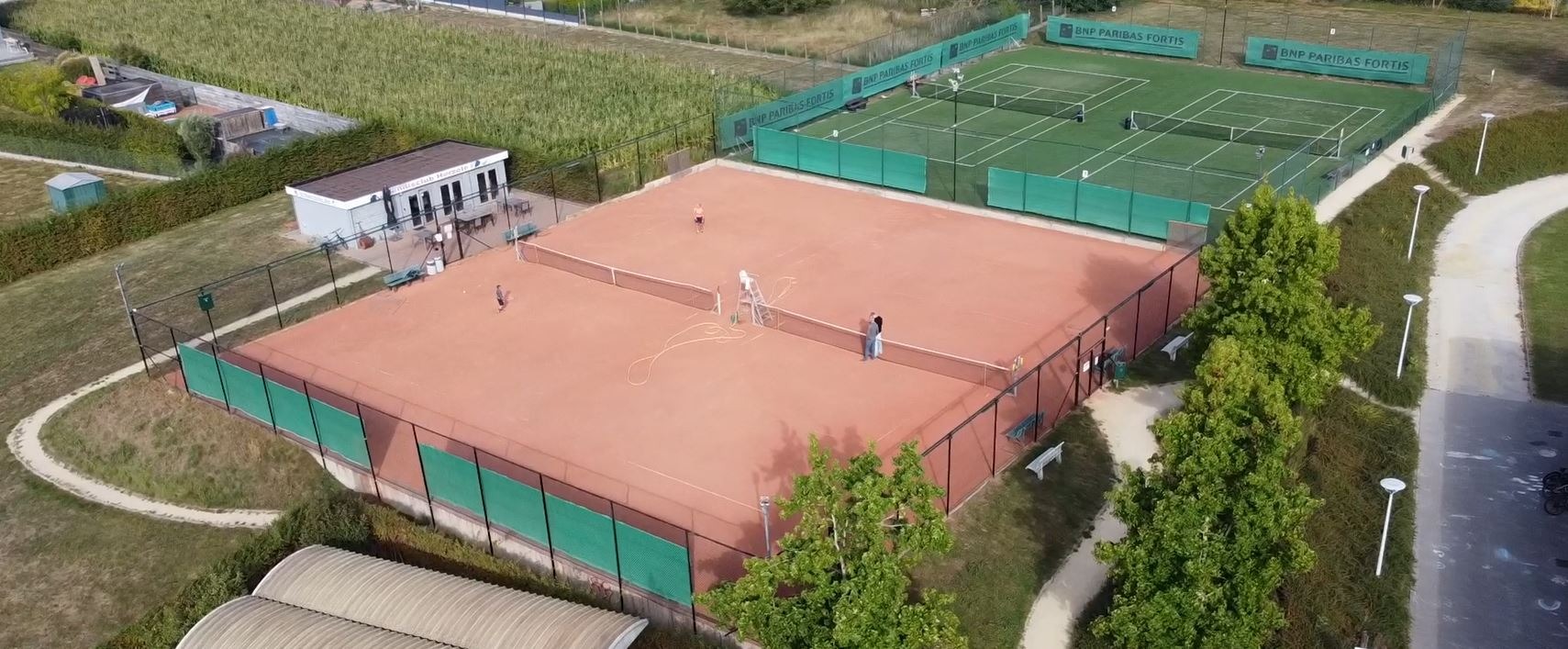 Met onze vier buitenterreinen – twee gravelterreinen en twee kunstgrasterreinen – kan je tijdens het zomerseizoen bijna altijd tennissen. Zelfs wanneer het weer even tegenzit, kan je na een regenbui snel opnieuw het terrein op dankzij onze kunstgrasterreinen.